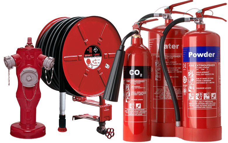 Des réseaux d’incendie RIA (robinet d’incendie armé) armoire, lance, bouche d’incendie, poteau d’incendie…